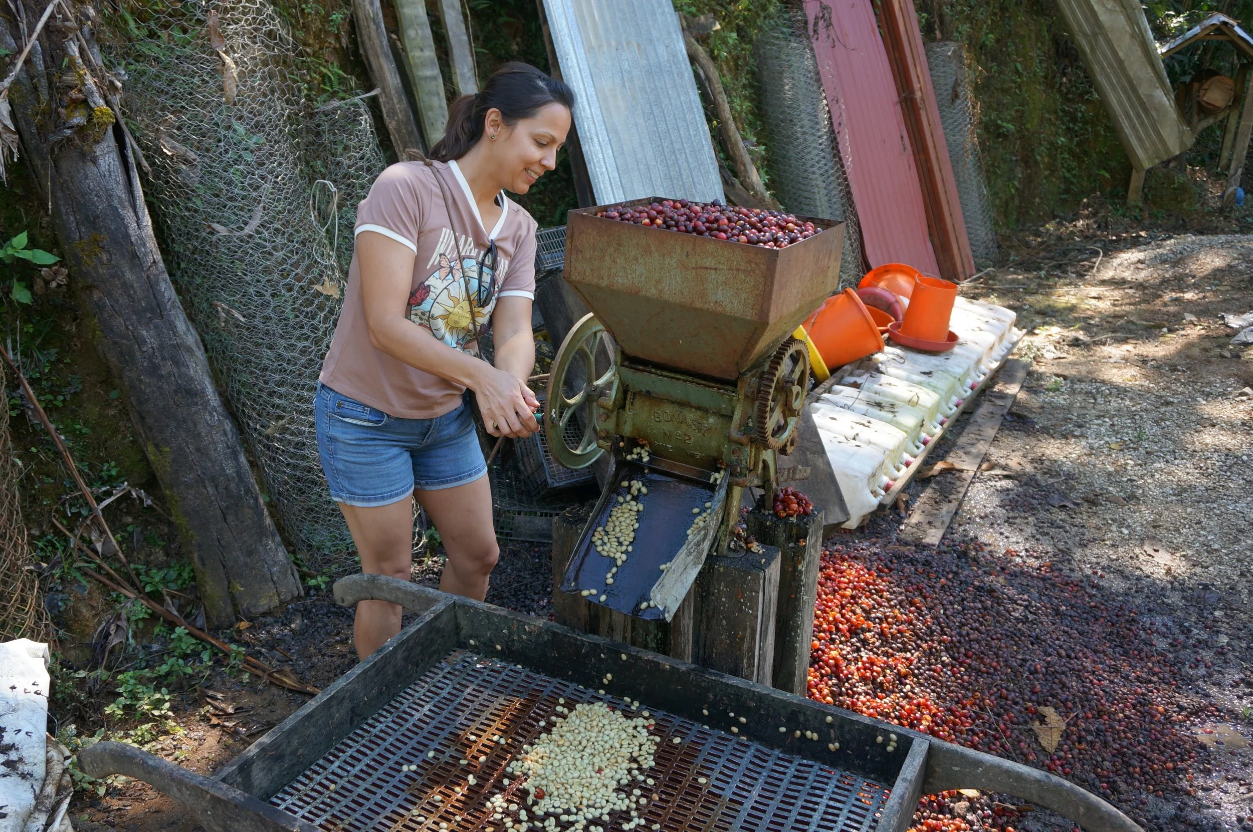 Yours truly, testing out a hand crank huller at Cafe Pluma Oro del Sur in Oaxaca, Mexico.